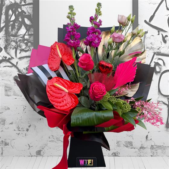 Secret Valentine is a thoughtfully designed mix of signature WTF style flowers, curated to capture the feeling of Valentine’s Day without giving everything away. Each bouquet is created with intention, blending colour, texture and movement to deliver a modern take on romance.