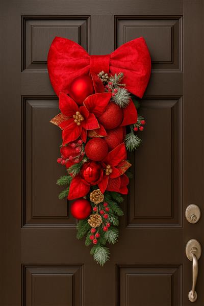 Add instant festive elegance to your home with this stunning 3ft Christmas swag. Handcrafted with rich red velvet ribbon, luxurious poinsettia blooms, and a mix of premium artificial foliage, it’s designed to bring a touch of glamour to your door or interior décor.