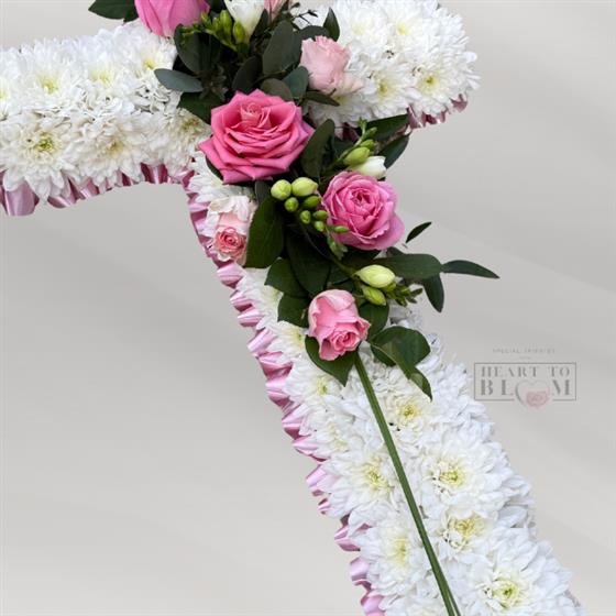 Funeral flowers Blackpool | Cross funeral tribute | Heart To Bloom floral tributes | Sympathy flowers UK