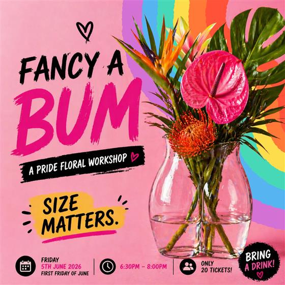 Join us for a one-off Pride special that’s bold, brilliant and gloriously cheeky. Fancy a Bum is a one-night-only floral workshop where you’ll arrange vibrant fresh flowers into your very own bum-shaped vase.