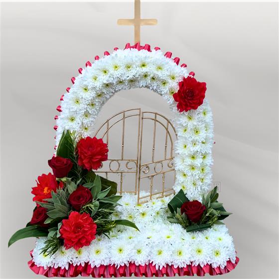 Perfect as a meaningful centrepiece for a funeral or memorial service, the Gates of Heaven design offers a beautiful expression of faith, hope and everlasting love.