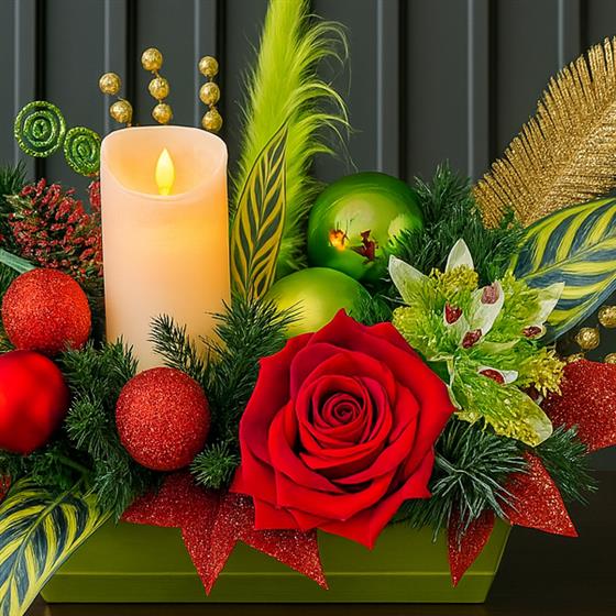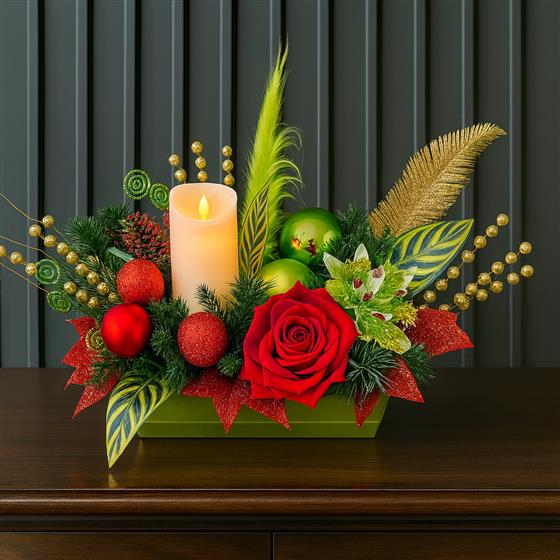 A Fun festive classic, our Red & Lime Green Artificial Centrepiece brings instant Christmas Flair wherever it is placed. Style it along your dining table, fireplace, sideboard or hallway for a touch of luxury that lasts.