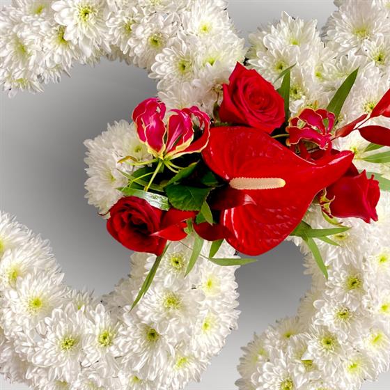 Funeral flowers Blackpool | Om funeral tribute | Spiritual floral tribute | Heart To Bloom bespoke funeral flowers UK