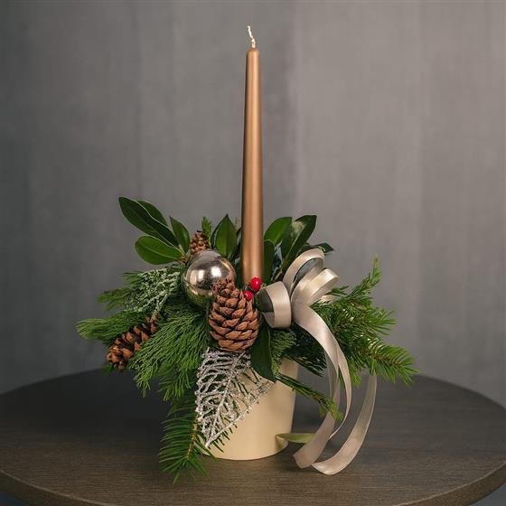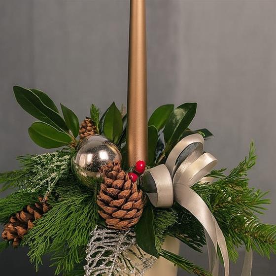 Meet the small-but-mighty taper arrangement — the elegant festive accent that instantly elevates any corner, table, or gift. Designed in the WTF! studio with rich seasonal textures and a sleek taper candle, this arrangement proves you don’t need something oversized to make a statement.