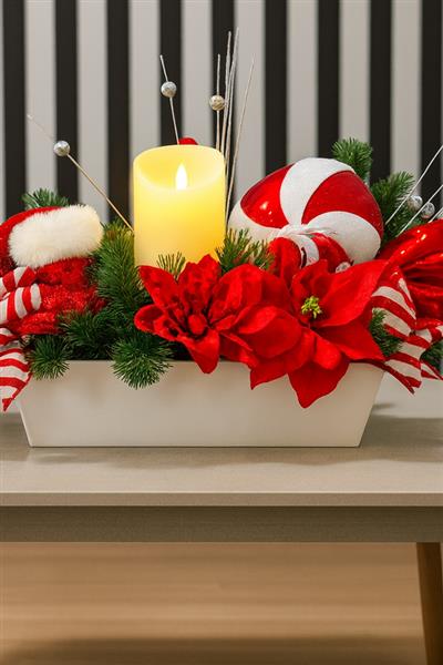 Artificial Christmas centrepiece | Red and white festive décor | Luxury reusable Christmas arrangement | Table and fireplace decoration UK