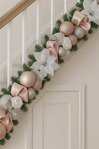 Rose Gold Christmas Garland | Frosted Christmas Garland | Luxury Fireplace Garland | Rose Gold Stair Garland
