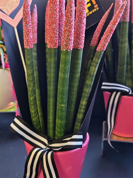 Please note that our florists will create a masterpiece for you and the picture is an example of the ‘Vibe’ that you choose. We use flowers to create art by using the most current, fitting and fresh flowers available. Self-expression and individuality is an important element of what we do and this is how we keep things funky and unique. You can be certain that each one will be as spectacular as the last and sure to create a WTF moment!