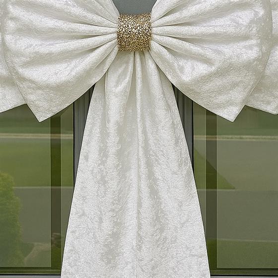White Velvet Door Bow | Crushed Velvet Bow | Luxury Christmas Door Bow Kit